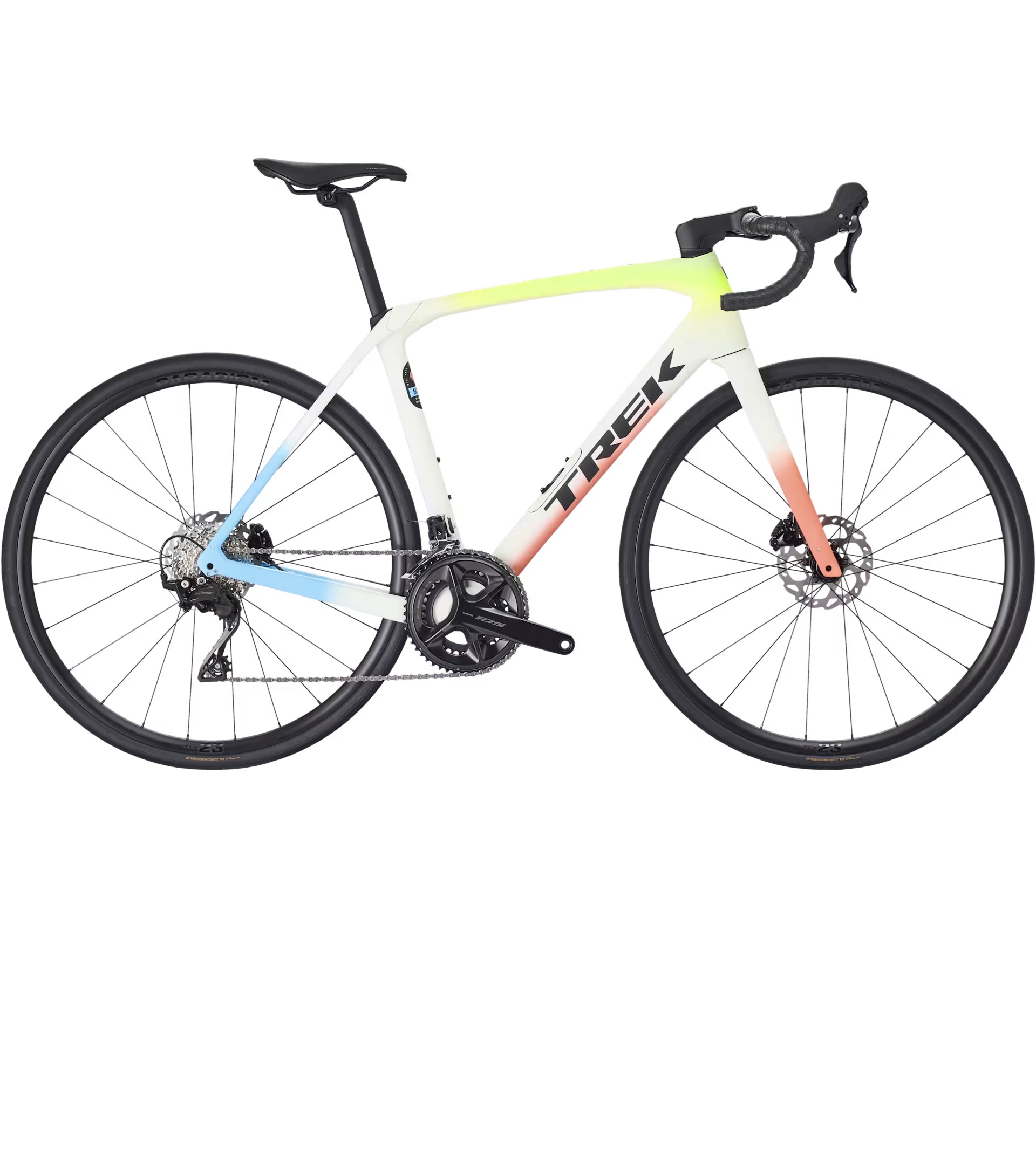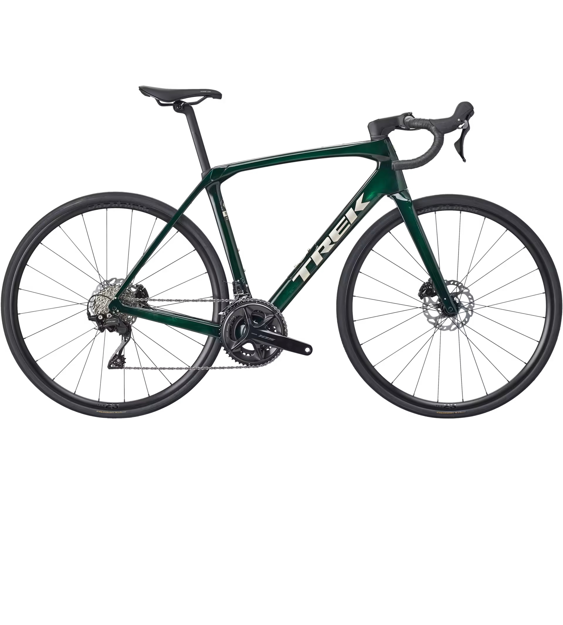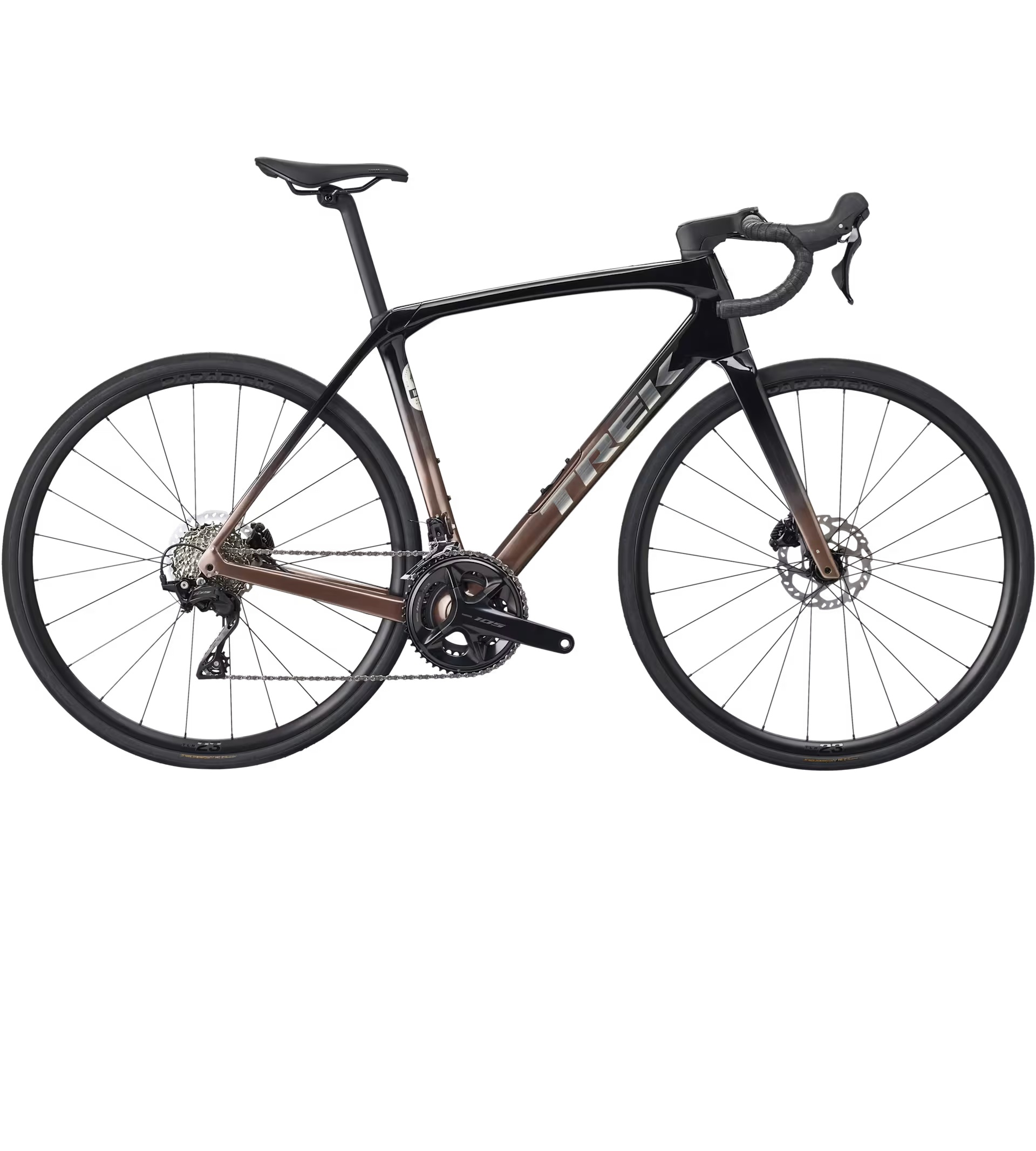 Domane SL z włókna węglowego, zwężana karbonowa rura sterowa, wewnętrzne prowadzenie przewodów hamulca, mocowania błotników, hamulce tarczowe flat mount, oś przelotowa 12 x 100 mm