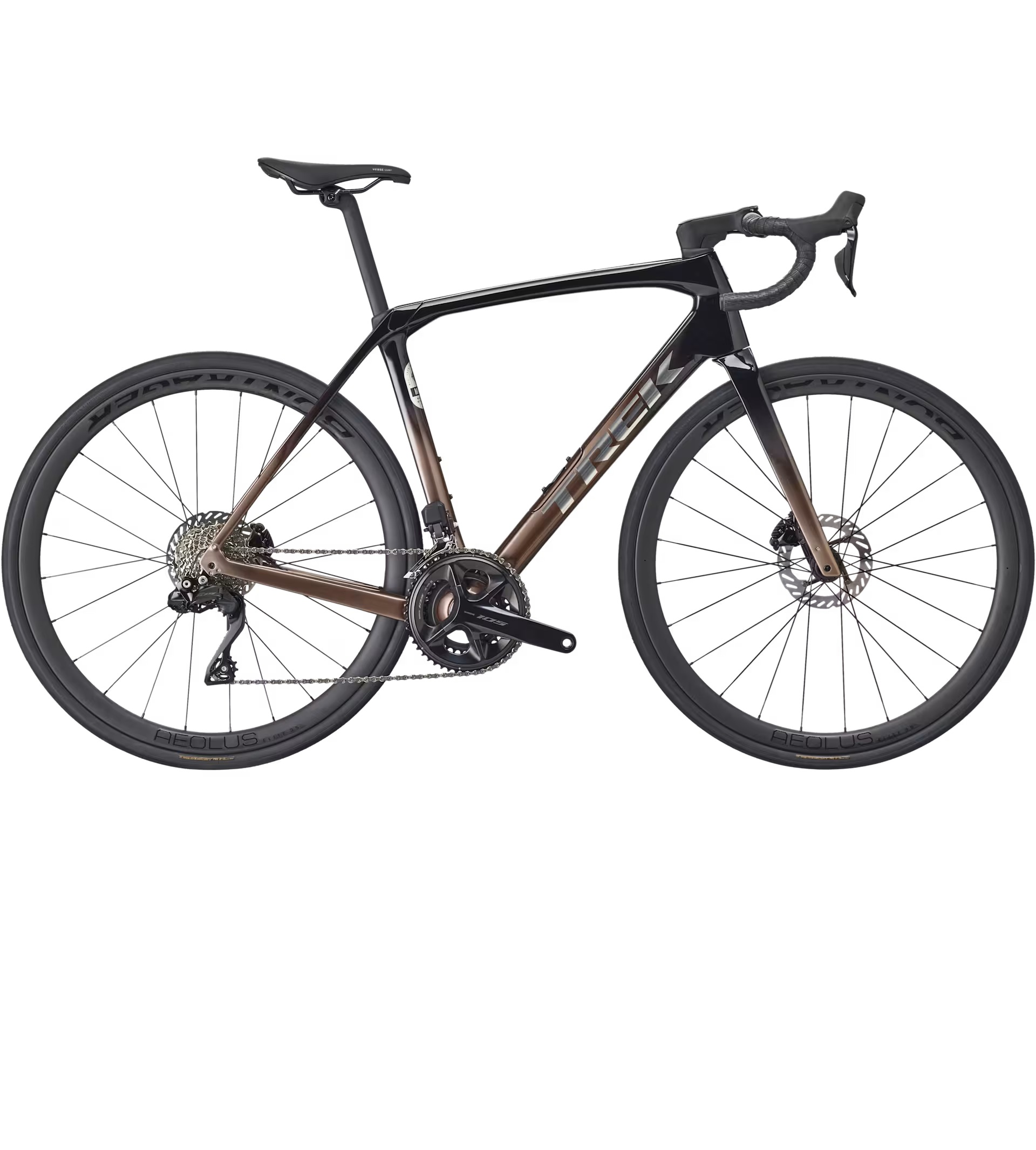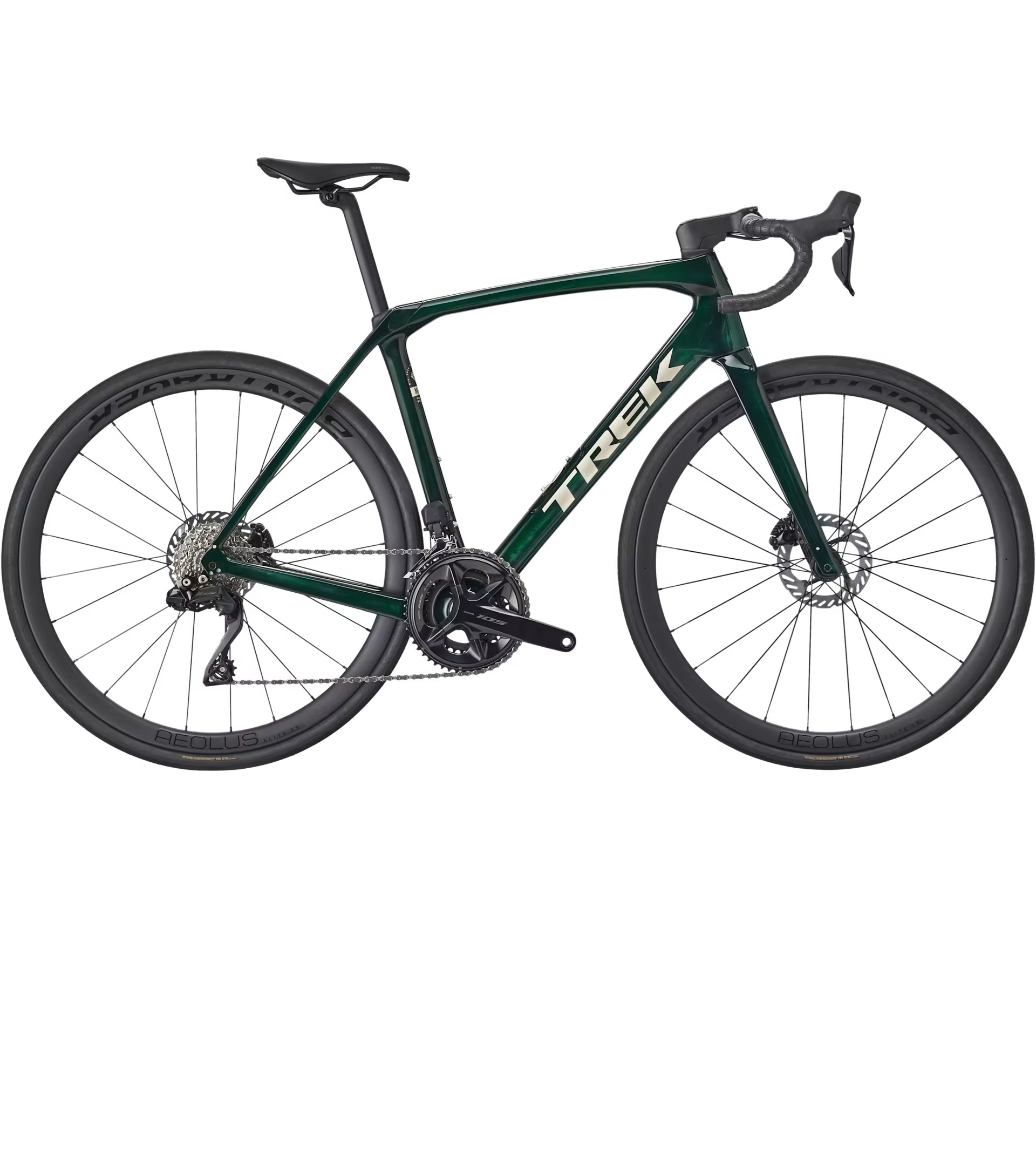 Domane SL z włókna węglowego, zwężana karbonowa rura sterowa, wewnętrzne prowadzenie przewodów hamulca, mocowania błotników, hamulce tarczowe flat mount, oś przelotowa 12 x 100 mm