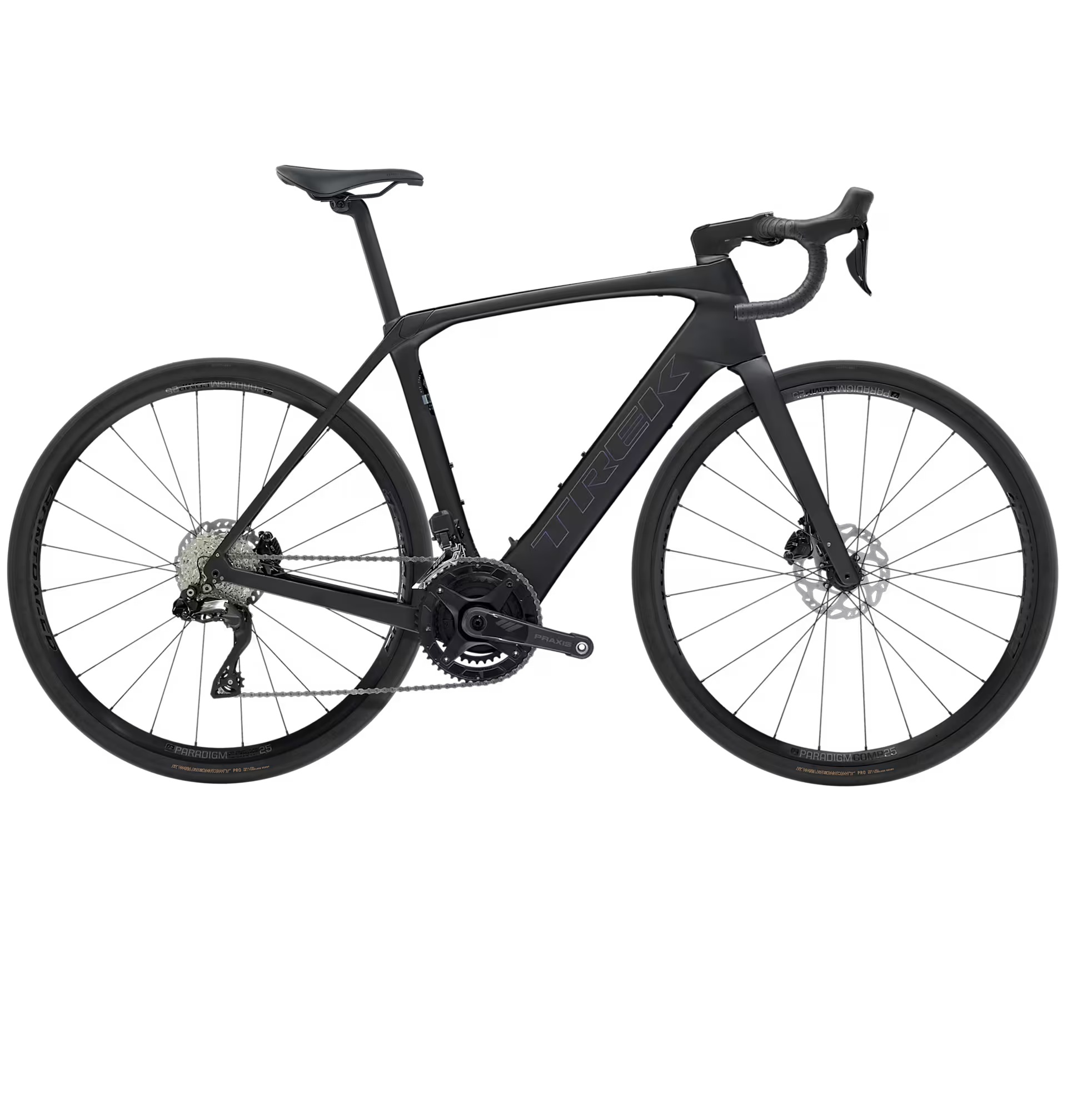 Domane+ z włókna węglowego, zwężana rura sterowa z włókna węglowego, wewnętrzne prowadzenie przewodów hamulca, mocowania błotników, hamulce tarczowe flat mount, oś przelotowa 12×100 mm