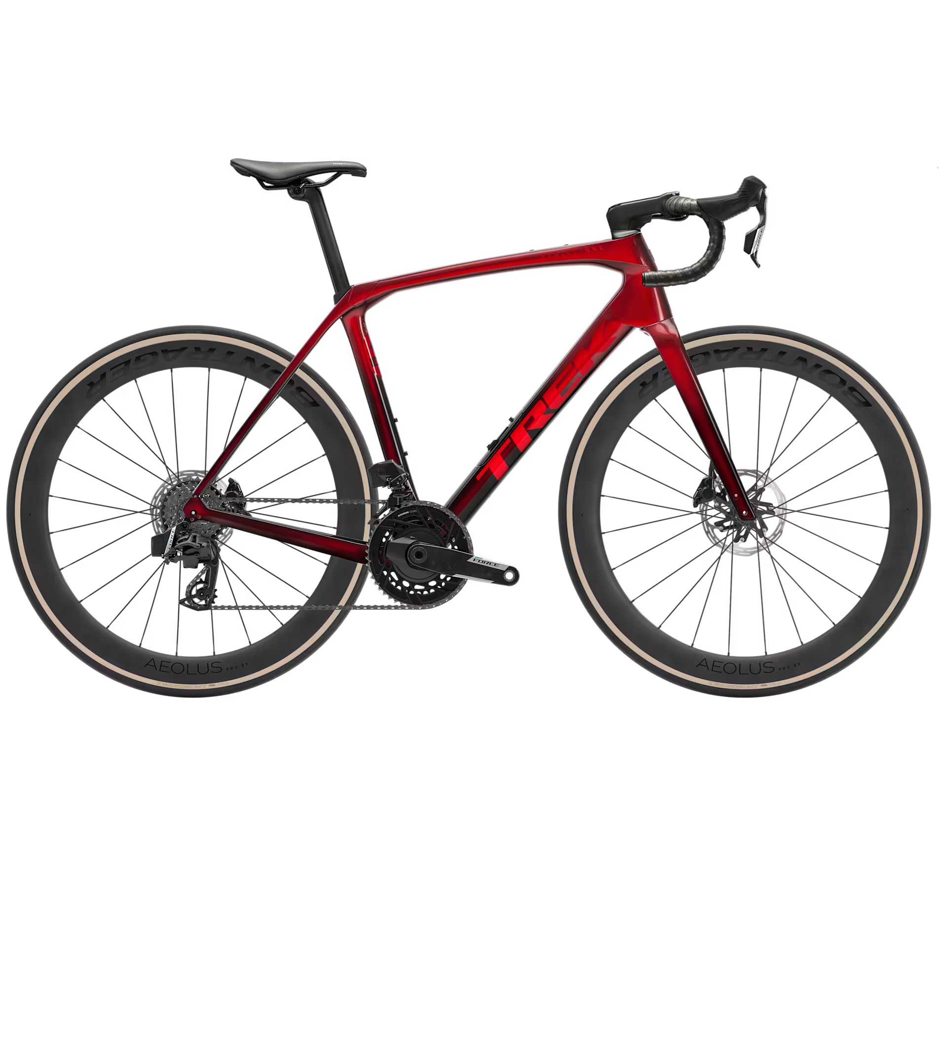 Domane SLR z włókna węglowego, zwężana rura sterowa z włókna węglowego, wewnętrzne prowadzenie przewodów hamulca, mocowania błotników, hamulce tarczowe flat mount, haki z włókna węglowego, oś przelotowa 12 x 100 mm